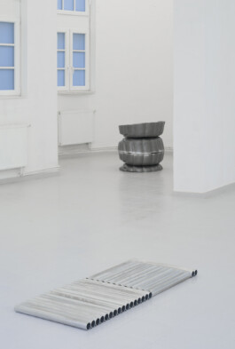 Stahl, Aluminium und Edelstahl, Dämmstoffe und Bleche werden zu Bedeutungsträgern und bilden die Grundlage für die künstlerische Auseinandersetzung. Im Umgang mit klassischem Handwerk und industrieller Fertigung sowie den häufig als „roh“ auftretenden Werkstoffen werden Anleihen zur Minimal Art sichtbar. Plank und Bay gehen jedoch einen Schritt weiter: Das Material, das die beiden Künstler:innen einsetzen, bleibt nicht auf sein äußeres Erscheinungsbild begrenzt. Haptik, taktile Eigenschaften und die sinnliche Wahrnehmung der Installationen und Skulpturen machen sie