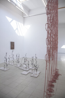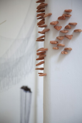 Ihre Arbeiten verhandeln auf unterschiedliche Weise Fragen zu sich wandelnden Identitäten, Migration, inneren und äußeren Landschaften sowie den Bezug zwischen Mensch und Natur in Zeiten des Anthropozäns. Selbstbewusst fordern sie Raum, schaffen große Bezugsflächen und Spannungsfelder zueinander und zu den Betrachtenden. Materialität spielt dabei eine wichtige Rolle: von dünnen Faden bis hin zu massivem Beton – jeder der ausgesuchten Rohstoffe wird geschickt eingesetzt und reflektiert.